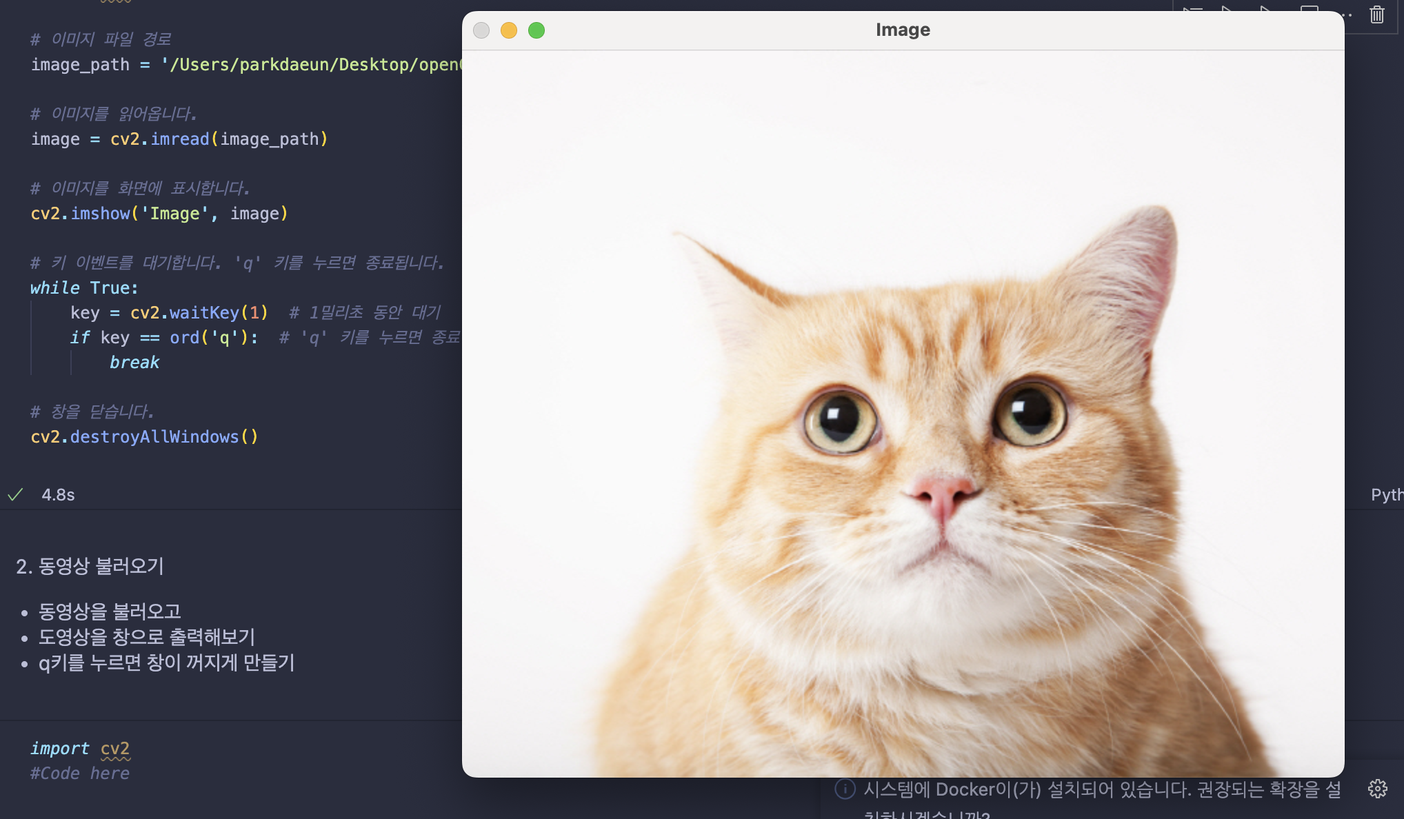 | opencv 영상 파일 읽는 법, 웹캠을 소스로 읽는 법, 영상을 쓰는 법, 영상을 흑백으로 바꿔서 출력하는 법 (0) | 2023.08.28 |